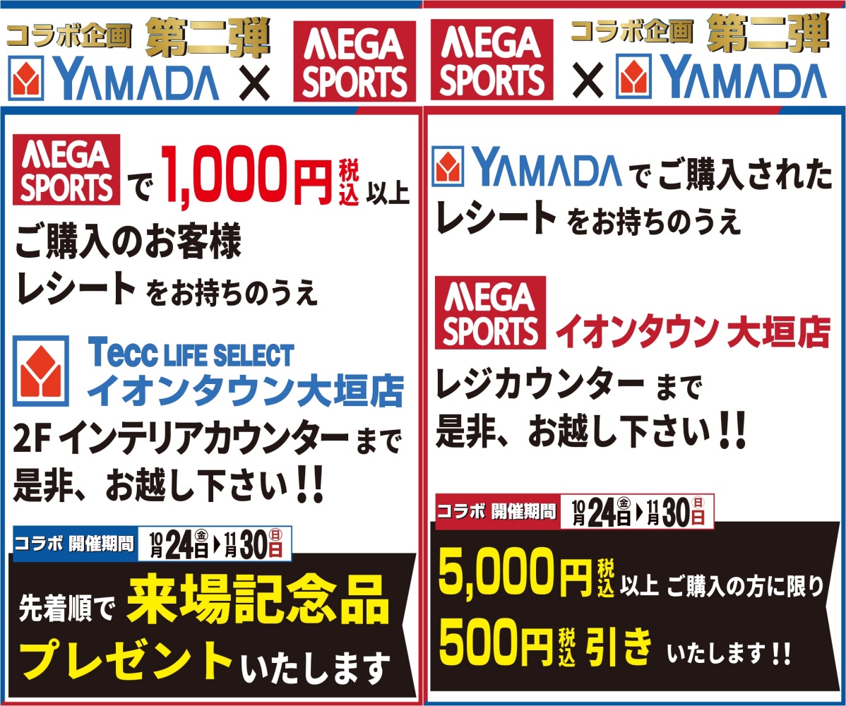 10月24日(金)~11月30日(日)の期間、「MEGA SPORTS×ヤマダ電機」のコラボ企画を開催。