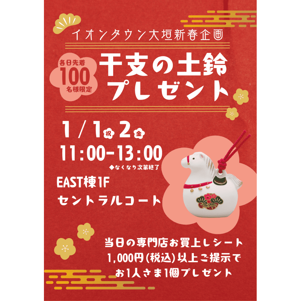 さらに、2026年1月1日(木・祝)、2日(金)の午前11時から午後1時まで、干支の土鈴プレゼントを実施。凛とした音を聞きながら新年を過ごすのもいいですね。